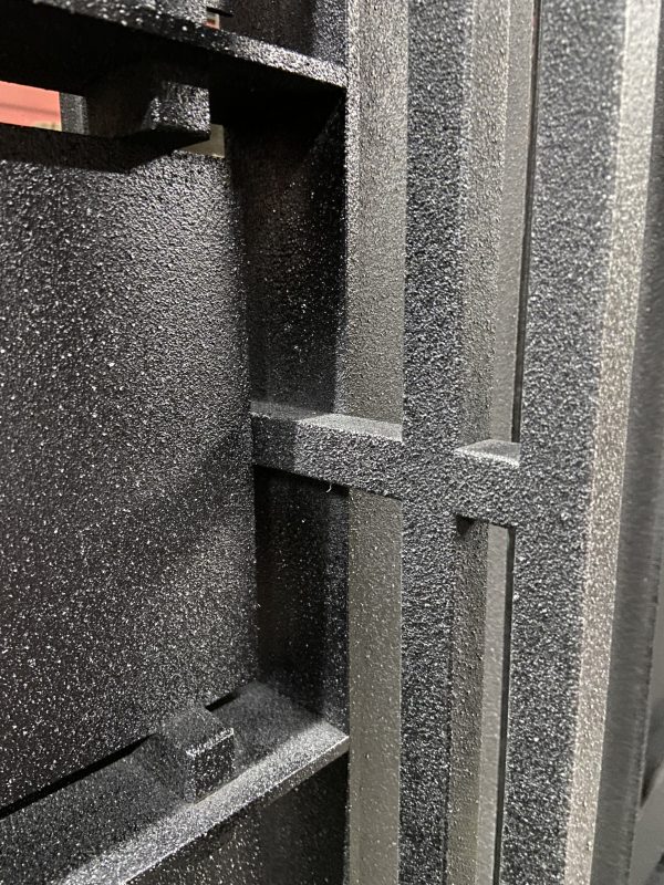 そもそも、溶射処理は弊社の専売特許ではなく、耐腐食性能や強度を上げるために、昔から建築分野や船舶の分野などではポピュラーに使われてきたものです。しかし、加飾処理という分野においては設備投資がある程度大きなものになるため、コスト面などを考え検討されてこなかったという歴史があります。弊社においてはこれらにトライしたのはすでに5年以上前。設備をはじめ、技術的なトライアンドエラーや研究を重ねており、加飾分野における溶射処理で研鑽を積んでいます。 溶射によって作り出せる金属肌は多彩です。荒さと細かさだけでも、鋳肌、鮫肌、柚子肌とさまざま。そこに、ブラシ仕上げ、加飾+磨きをかけていけば、溶射表面の凹凸がそのまま模様となり表情も豊かに出ます。そのほかにも、塗装などを組み合わせていけば、無限の表現力となります。さらに溶射の強度が極めて強いため、耐久性能も優れています。